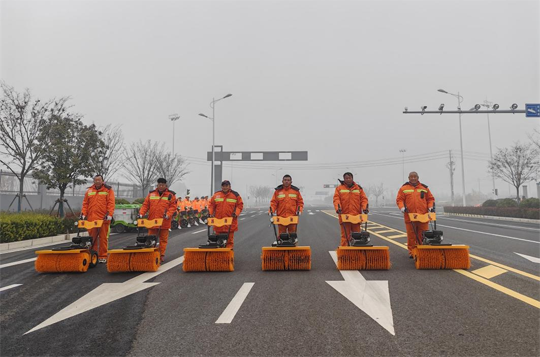 “開始演練!”隨著一聲令下,所有人員、設備迅速集結,按照預定到達指定位置,掃雪除冰演練正式拉開帷幕。本次演練以機械為主,人工為輔,按照“雪前準備、預警發(fā)布、啟動應急響應”流程有序開展。演練中,一臺臺撒布機、雪滾車、雪鏟車等各類“除雪神器”輪番上陣,猶如吹響了掃雪除冰“集結號”。