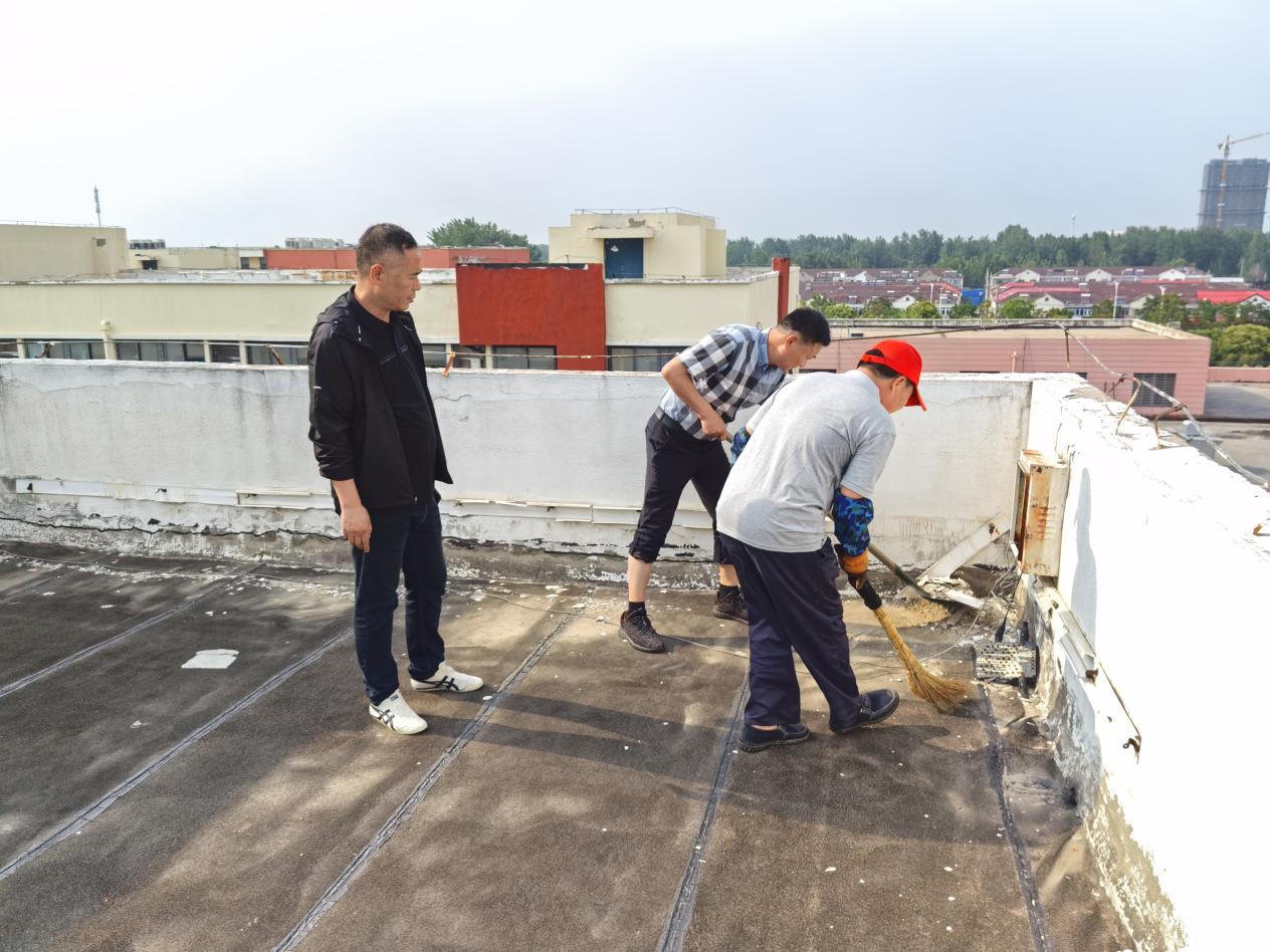 為應(yīng)對(duì)雨季到來,保障排水系統(tǒng)暢通,公司組織保潔人員全員出動(dòng),對(duì)樓頂碎片、建筑垃圾、雜草等,進(jìn)行集中清理,以實(shí)際行動(dòng)筑牢雨季防汛安全防線。