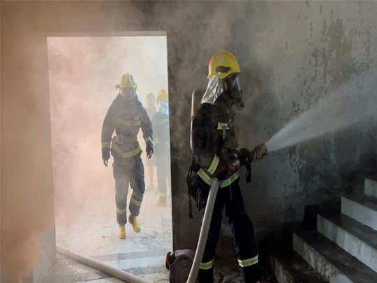 下午15點50分,科技物流園內(nèi)部突然起火,現(xiàn)場濃煙滾滾,相關(guān)工作人員立即采取自救措施,通知義務消防員有序組織人員疏散,消防官兵到場后,立即迅速組織對被困人員實施救援,及時堵截火勢、控制火情,經(jīng)過近30分鐘的滅火救援戰(zhàn)斗,大火被徹底撲滅,演練取得了圓滿成功。