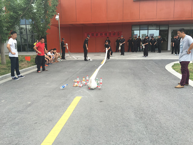 趣味運(yùn)動會在歡樂的氣氛中進(jìn)行,趣味運(yùn)動會項目共有拔河、跳繩、往返跑、消防“保齡球”4個比賽項目。各項比賽都扣人心弦,趣味盎然,精彩場面隨處可見。比賽中每個項目都突出了“樂”字,參賽者“玩”得開心,觀眾看得開心,加油聲此起彼伏,安保人員相互間協(xié)作,共同完成各項比賽。