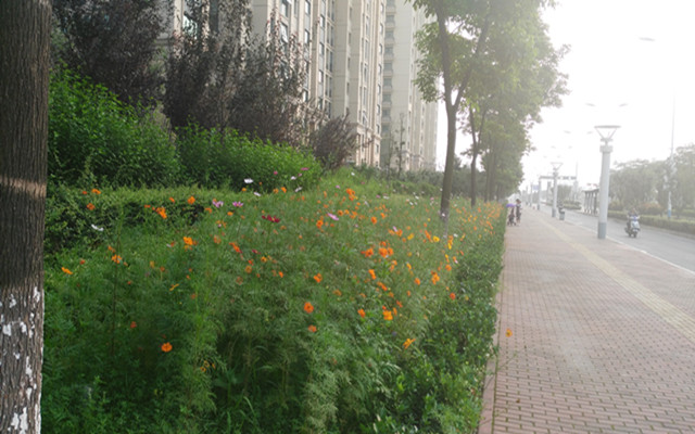 此次花草栽植種類繁多,主要有金雞菊、蛇目菊、松果菊、石竹等,本次還創(chuàng)造性地應用了一種野花組合,既由一、二年生草本花卉及多年生宿根花卉配比組成,包括春、夏、秋三季開花的花卉種類,播種以后,從春到秋開花不斷,美不勝收。