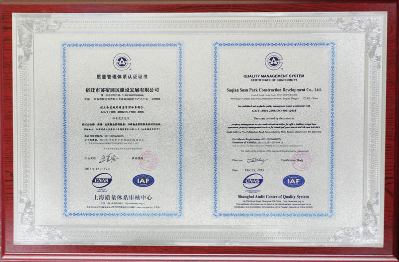 質(zhì)量管理體系認(rèn)證證書